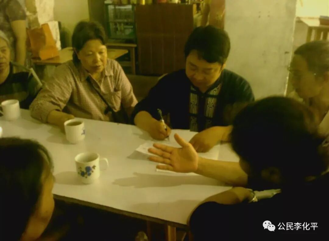 云飞带我到一条奇怪的巷子,进了一间破破烂烂的房子,算是茶馆。我们就在这样的场合与访民朋友交流,好多人围住我俩,抢着诉说各自的冤情。云飞呢,扒在脏兮兮的茶几上记录。